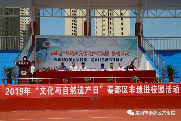 5月21日上午9时,秦都区在英才学校举办2019年“非遗进校园”启动仪式。秦都区人民政府副区长赵亚莉、副区长吕书鹏出席活动。 &nb...