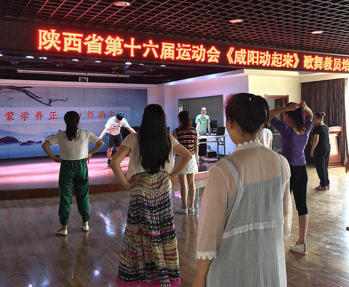 2018年7月28日,陕西省十六运歌舞教员培训班在我馆举行。来自我市各单位、各县区共计50余名文艺骨干参加了此次培训。培训集中教授了歌舞《咸阳动起来》。按照十六运咸阳筹委会的要求,培训结束后,各县区将在各自的地标性建筑场地集中组织拍摄200—500人的歌舞视频,并将在8月16日的开幕式上向八方宾客呈现,营造同唱同跳一首歌的壮观场景,体现咸阳人的凝心聚力、激情省运的精神。