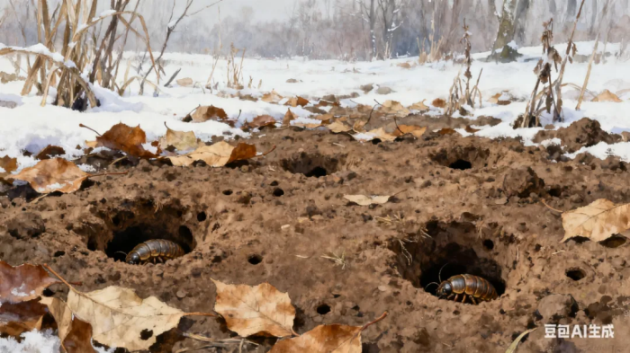 “咸”意为“都”,“俯”是低头的意思。蛰虫咸俯是说霜降时寒气肃凛,虫子都躲藏在洞中,低下头什么事也不做,准备开始蛰伏过冬了。