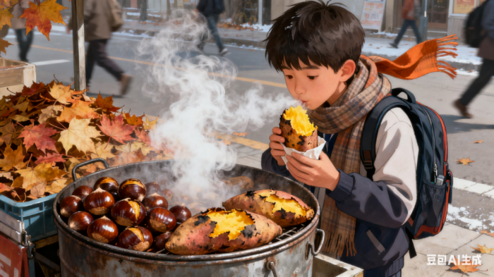 在北京,霜降之后别具情怀的两样吃食,糖炒栗子和烤白薯,是很多人在深秋到初冬时节的挚爱。不用吆喝,飘香四溢的味道便是最好的广告。《燕京岁时记》中写道:“十月以后,则有栗子、白薯等物。栗子来时用黑砂炒熟,甘美异常。青灯诵读之余,剥而食之,颇有味外之味。”