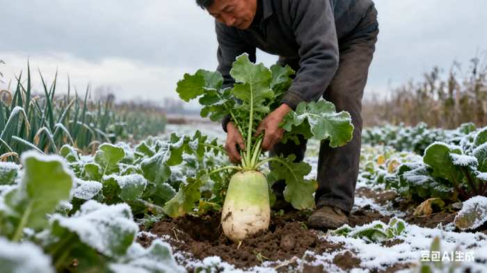 “霜降拔萝卜,立冬起白菜。”汉代农学著作《氾胜之书》中记载:“芸苔足霜乃收,不足霜即涩。”这里的“芸苔”指萝卜,意思是萝卜最好经过打霜后再收割,否则吃起来会有苦涩的味道。白萝卜是一种营养价值较高、价格便宜的食物,又称“土人参”,民间有“冬吃萝卜夏吃姜,不劳医生开处方”的谚语。