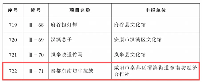 近日,陕西省人民政府办公厅正式公布第八批省级非物质文化遗产代表性项目名录,秦都区申报的 “秦都东南坊牛拉鼓”、“剪纸(秦都剪纸)”、“面花(秦都面花)”、“秦都炭精画”和“秦都传统戏剧脸谱绘制”五项非遗项目位列其中。这些项目依托深厚的历史文化底蕴、独具匠心的技艺价值与鲜明的咸阳本土特色,在众多申报项目中脱颖而出,既是秦都区非物质文化遗产保护工作的重要突破,也标志着区域内传统文化的传承与发展迈入全新阶段。