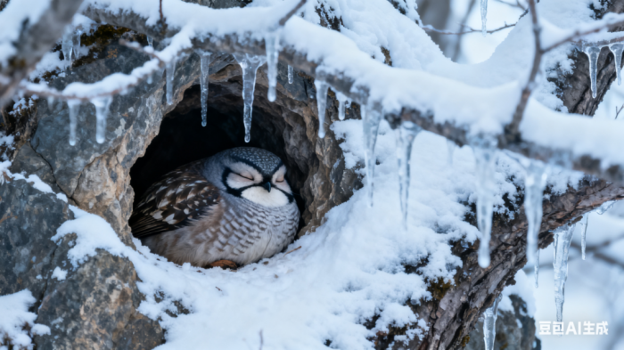 鹖鴠(hé dàn)即寒号鸟,进入大雪时节,天气愈发严寒,寒号鸟会因低温和环境肃杀而停止鸣叫,这一现象也直观展现了仲冬的酷寒。