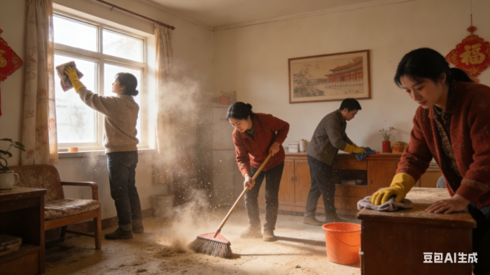 古代的扫尘习俗多与农历元旦(春节)绑定,称为 “扫年”,但随着公历元旦成为法定新年,不少家庭也会选择在公历新年前进行扫尘,用干净整洁的环境迎接新一年。人们会彻底清扫房屋内外,擦拭家具、清洗衣物,不仅是为了去除积尘污垢,更有扫除旧岁霉运、迎接新年吉祥的寓意。