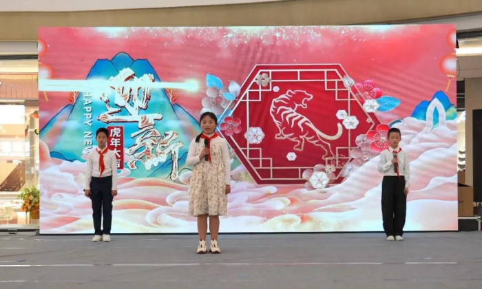诗会现场,暖意融融,诗意盎然。近五十名朗诵爱好者齐聚一堂,以诗为桥,以歌为媒,用深情的吟诵和热忱的表达,共同迎接2026年的到来。整场诗会共呈现了17个精彩节目,内容丰富,形式多样,既有《岳阳楼记》《蒹葭》等传统经典篇目,带领观众感受中华文化的博大精深;也有《新年你好》、《打开新年》、《中国年》、《平安是福》、《诗意中国》等现代作品,抒发了对新年的美好憧憬和对生活的热爱。