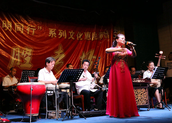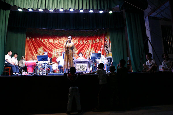 2017年7月6日晚上八点半,秦都区马庄办东界村文化广场上好不热闹。秦都区2017“与文明同行”系列文化惠民演出秦腔专场如期与村民约见。这场演出由秦都区文体事业局、马庄街道党工委、马庄街道办事处主办,区文化馆承办。来自咸阳市秦兴演艺有限公司王茂盛等数十位国家一、二级秦腔演员为村民们带来了精彩的演唱,《血泪仇》《西湖遗恨》《火焰驹》等传统唱段和《洪湖赤卫队》等现代戏唱段博得了现场观众的阵阵掌声。演出现场,我馆工作人员向观众发放创文知识宣传单,为我市创建文明城市夺取胜利营造良好氛围!
