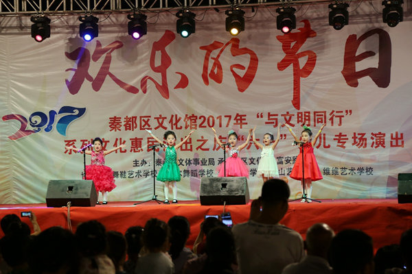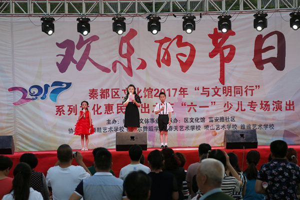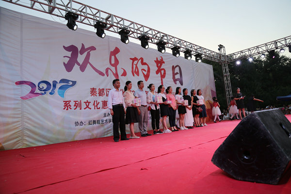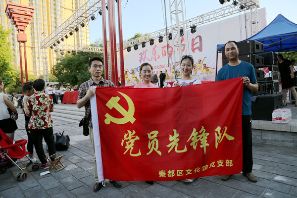 晚会开始前2小时秦都区文化馆党员志愿者已经来到了晚会现场,进行各项演出准备工作。经过近1个多小时的演出准备工作,晚会如期顺利开演。