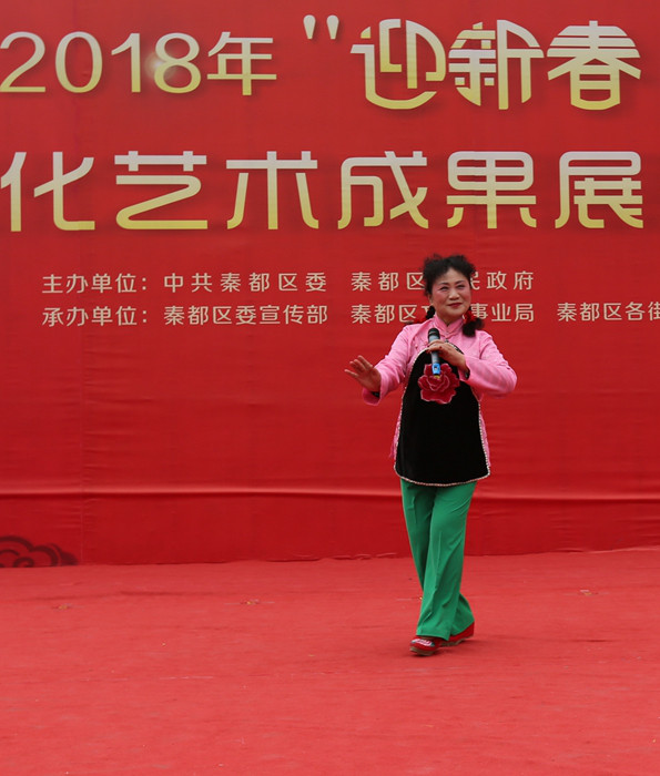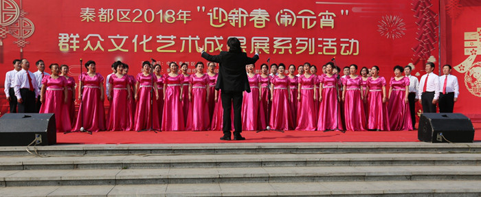 在我国传统佳节元宵节来临之际,由中共秦都区委区政府主办,区委宣传部、区文体事业局、各街道办承办的2018“迎新春、闹元宵”系列文化活动在秦都辖区五环广场、中华广场、统一广场缤纷上演,为咸阳老百姓欢欢喜喜过大年、热热闹闹庆元宵送去了连环盛宴。在本次系列活动中,秦都区文化馆主要负责组织统一广场正月十四下午、正月十五上午和下午的三场群众文化成果展演。经过精心筹划,区文化馆将过去一年里扶持辅导过的群众优秀社团组织起来,给她们搭建了充分展示的平台。就这样群众合唱与朗诵展演、优秀文艺社团精品节目展演和秦腔专场展演有序开展起来,三百余名文艺爱好者参加了此次演出。舞台上演员们全身心地投入表演,舞台下观众全神贯注的观赏演出,台上台下交相呼应,绘制出了一幅热闹祥和过大年、欢天喜地庆元宵的美好画卷。