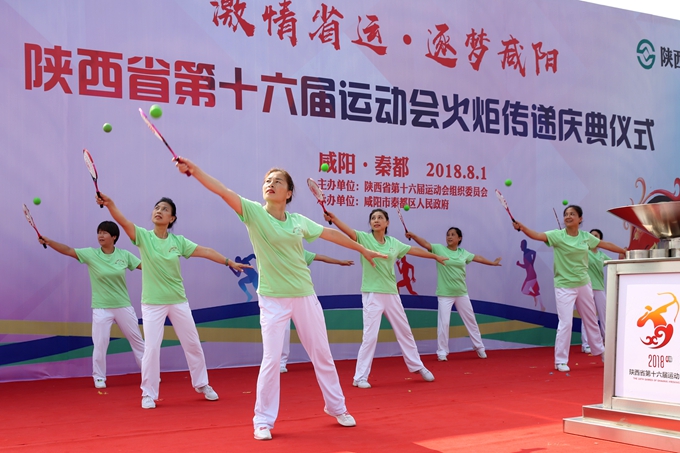 2018年8月1日,以咸阳市统一广场为起点,以新建的五环广场为终点的第十六届陕西省运动会火炬传递咸阳秦都站仪式,在激昂的大秦战鼓声中隆重拉开序幕。