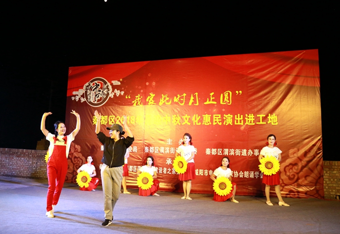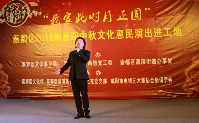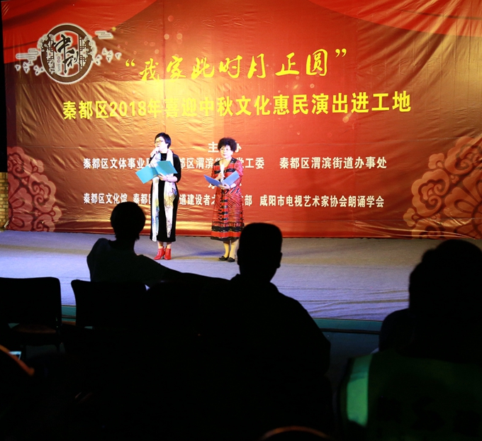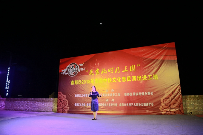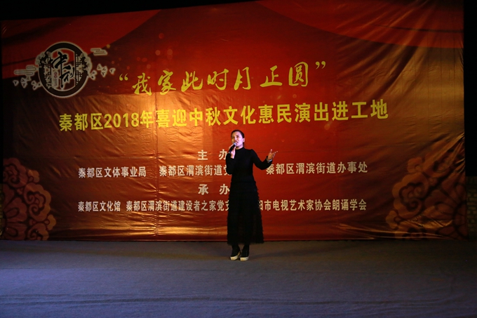 为了认真贯彻落实国家《公共文化服务保障法》,切实提升我区的公共文化服务效能,丰富参与我区城市建设的外来务工人员的业余文化生活,激发外来务工人员参与“五个秦都”建设的工作热情,增强外来务工人员的城市融入感和归属感,彰显秦都咸阳开放、包容、自信、美丽的城市风范。2018年9月21日晚7点,中秋佳节来临之际,由秦都区文体事业局、秦都区渭滨街道党工委、秦都区渭滨街道办事处主办,秦都区文化馆、秦都区渭滨街道建设者之家党支部、咸阳市电视艺术家协会朗诵学会承办的“我家此时月正圆”文化惠民专场演出在渭滨街道建设者之家准时拉开帷幕。