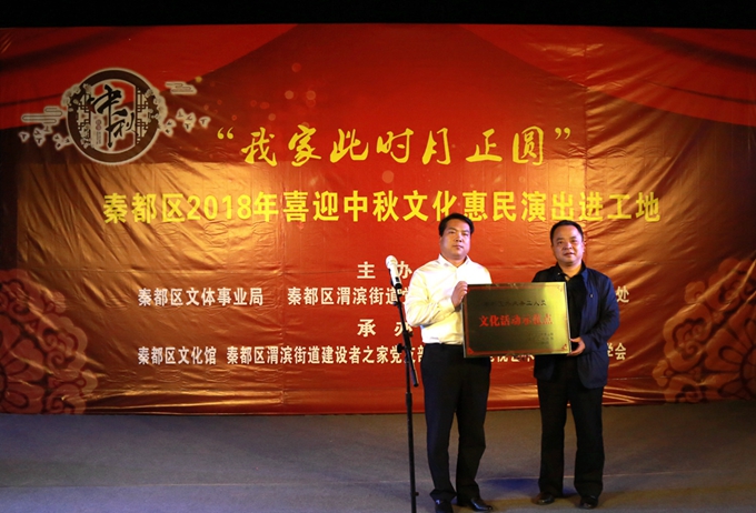 演出开始之前,秦都区文体事业局局长张欢利宣读命名渭滨街道建设者之家为“秦都区外来务工人员文化活动示范点”的决定并颁发示范点牌匾。