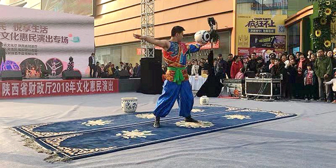 2018年11月11日,我馆协办陕西省杂技艺术团惠民演出走进秦都,分别在029艺术区和万达门前广场为广大市民上演了两场精彩的杂技表演,让咸阳人民大饱眼福!