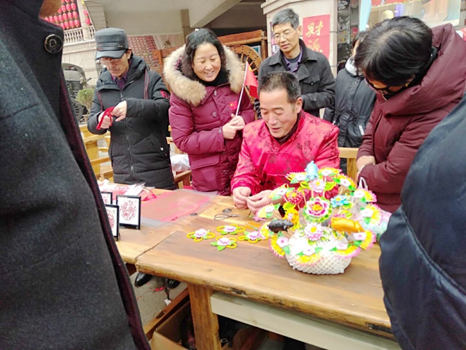 在本次系列活动中,秦都区文化馆主要负责组织中华广场正月十三下午、五环广场正月十四下午、统一广场正月十五上午的综艺专场演出和统一广场正月十四下午的戏曲专场演出以及福园广场正月十四上午的非遗展示展演。综艺演出以区文化馆扶持辅导的群众优秀团队为主要阵容,三百多名文艺骨干参加了展演。虽然天气阴冷,但是演员们全身心的投入,丝毫没有受到影响,博得了台下观众热情洋溢的掌声,为传统佳节平添了一份热闹与喜庆。在福园广场组织的非遗展示展演以我区的非遗保护项目民间剪纸、戏剧脸谱、碳晶画等为主,受到了市民的广泛关注。