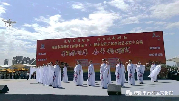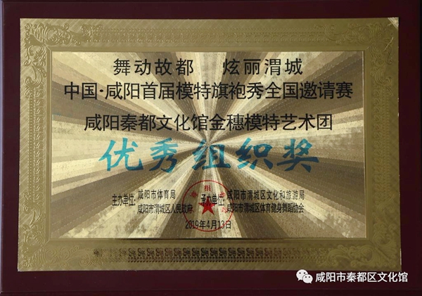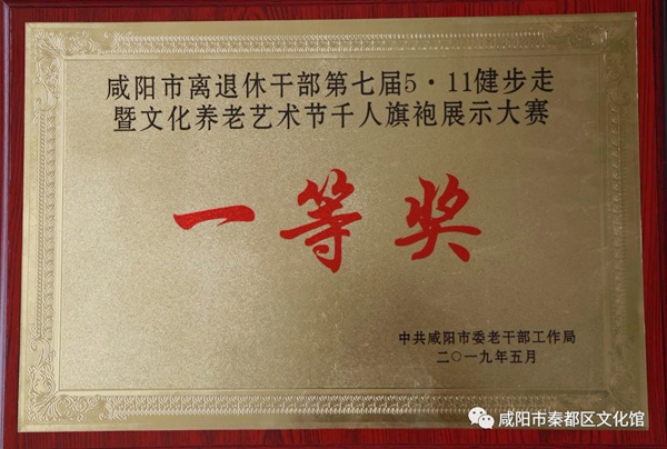 随后,在中共咸阳市委老干部工作局主办的咸阳市离退休干部第七届5·11健步走暨文化养老艺术节千人旗袍展示大赛上,秦都文化馆金穗模特团队喜获一等奖。