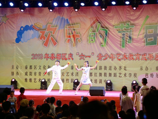 在“六一”国际儿童节来临之际,由秦都区文化和旅游局、渭阳西路街道办事处主办,秦都区文化馆承办,咸阳市青少年宫春天艺术团、秦都红舞鞋舞蹈艺术学校、芭特尔舞蹈艺术学校、维维艺术学校、铿锵竹韵堫山艺术培训中心协办的“欢乐的节日”2019秦都区庆“六一”青少年艺术教育成果展演,5月31日晚在中华广场如期举行。