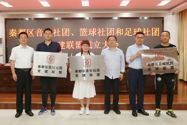 会上宣读了《秦都区文化和旅游局党组关于成立秦都区音乐社团、篮球社团、足球社团党建联盟的决定》,区级领导先后为社团授牌授旗,党建联盟社团所在社区党支部书记和社团负责人先后做了表态发言。