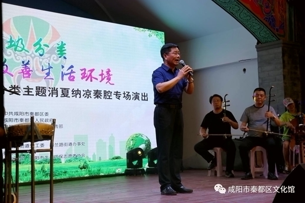 6月16日晚,2019年秦都区垃圾分类主题消夏纳凉秦腔专场演出在福园巷子精彩上演。本次活动由中共秦都区委、秦都区人民政府指导,秦都区委宣传部、秦都区文化和旅游局、西兰路街道党工委、西兰路街道办事处主办,秦都区文化馆承办。 区长景雪峰,区委副书记李晓曦,区委常委、副区长戴勇强,区委常委、宣传部部长李琳,区人大常委会副主任李卫星参加了活动。