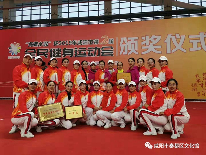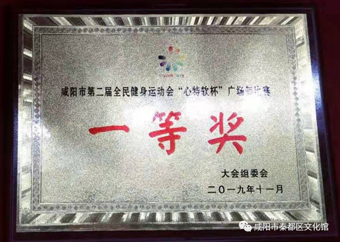 热烈祝贺我馆东方舞蹈队11月7日—9日,参加咸阳市第二届全民健身运动会广场舞比赛荣获一等奖。
