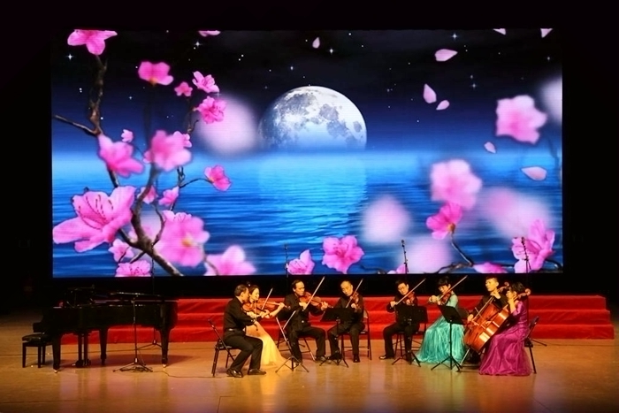 经典的旋律,美好的祝福。音乐会在气势磅礴混声合唱《祖国颂》中拉开帷幕,弦乐四重奏《花好月圆》《小夜曲》、板胡独奏《欢韵》、笛子合奏《姑苏行》,以乐器汇聚成真挚情怀,赢得观众阵阵掌声,合唱《不忘初心》道出了秦都儿女在党的领导下不忘初心、砥砺前行、逐梦未来、共创美好的心声,音乐会在《爱我中华》《中华之梦》合唱中完美落下帷幕。