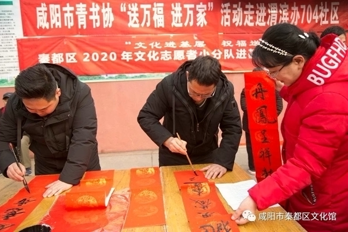 1月16日,由中共秦都区委宣传部、区文化和旅游局、区文联、区文化馆、区兴趣链党建联盟举办的“文化进基层、祝福送万家”秦都区文化志愿者小分队进基层巡演暨义写春联活动分别深入到辖区西兰路街道西北二棉社区和渭滨街道七零四社区,为广大居民送去了精彩的文艺演出,并义务书写春联三百余幅,把党和政府的温暖和关心送给每一位居民。