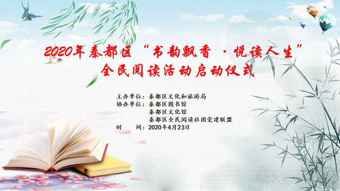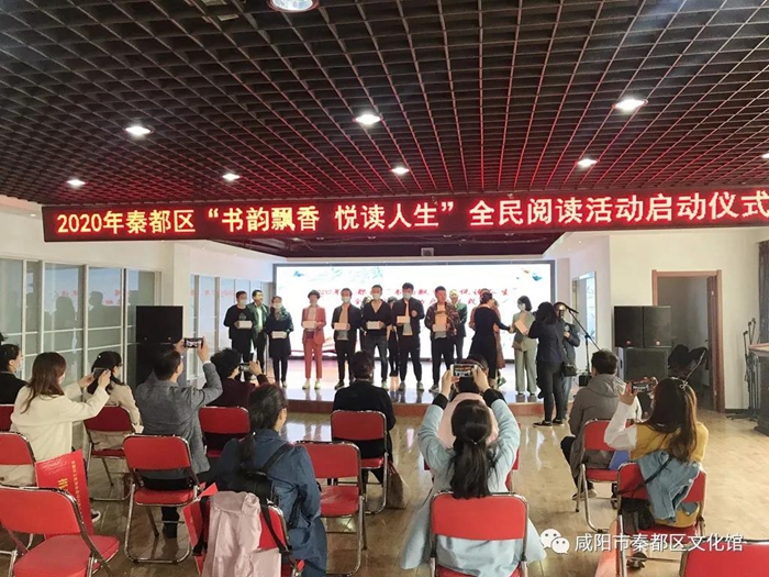 今天是第25个“世界读书日”,为了推广全民阅读,打造书香秦都,提升城市文化品味和市民文化素养,进一步完善公共文化服务体系,加强社区文化建设,稳步推进总分馆建设,切实把全民阅读活动打造成为服务大众、惠及社会的文化惠民工程,带动更多的居民参与全民阅读活动,4月23日上午,由秦都区文化和旅游局主办,区图书馆、文化馆、全民阅读社团党建联盟协办的2020年秦都区“书韵飘香·悦读人生”全民阅读活动启动仪式,在秦都区文化馆四楼多功能厅如期举行。