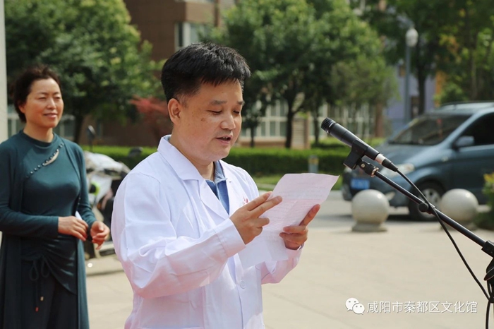 秦都区第六批非物质文化遗产代表性传承单位负责人、代表性传承人-----咸阳杨仨(sa)疼痛医院院长杨云刚代表传承单位、传承人作了表态发言。