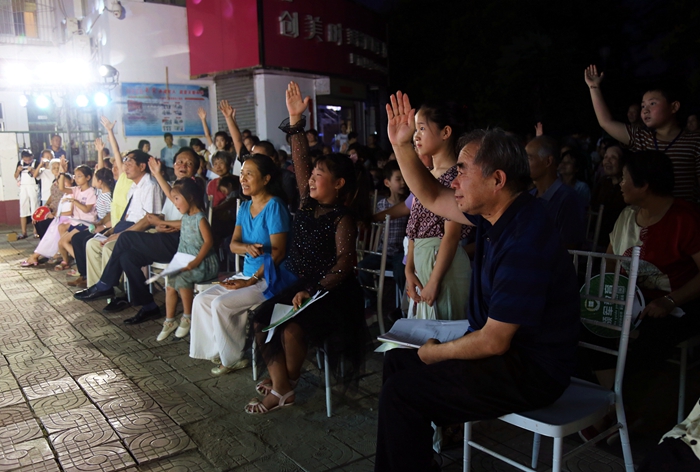 为了广泛宣传创文知识,普及群众创文知晓率,演出中还穿插进行了三轮以社会主义核心价值观、咸阳城市名片、创建文明城市、社区网格化管理等为主要内容的有奖知识问答环节,现场观众踊跃参与答题,使活动的现场情绪热烈,气氛高涨。