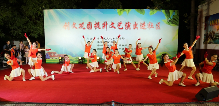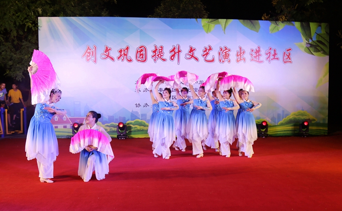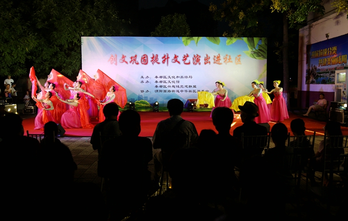 为进一步巩固我市文明城市创建成果,广泛获得更多社区居民对文明城市巩固提升工作的理解、参与和支持,8月28日晚,由秦都区文化和旅游局主办,秦都区文化馆承办,渭阳西路街道中华社区居委会协办的创文巩固提升文艺演出,走进了中华社区。