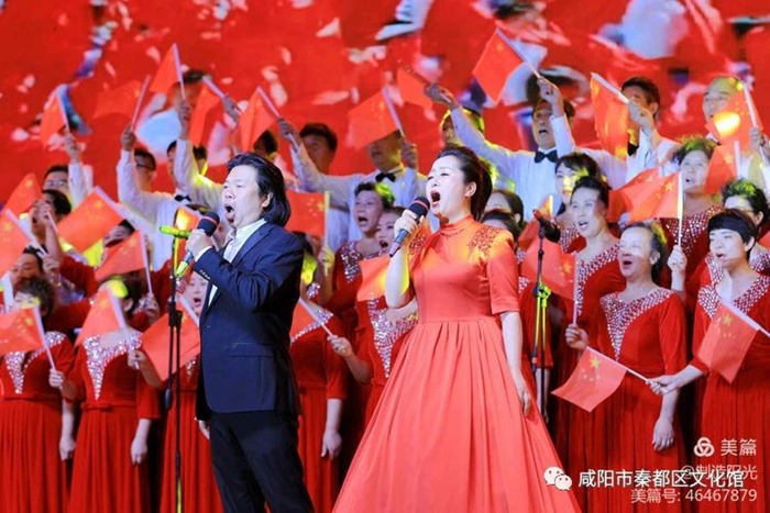 9月27日晚,秦都区“迎国庆 颂祖国”兴趣链党建联盟文艺展演在中华广场精彩上演,演员们用自己的歌声和舞姿为祖国71岁华诞献上祝福,祝愿伟大的祖国繁荣昌盛、国泰民安。