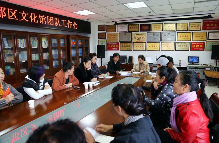 10月15日上午,我馆在三楼会议室召开了秦都区文化馆团队工作会,馆长赵艳妮、群文部主任朱小健及11支团队负责人参加了会议。会上,赵艳妮馆长首先对东方舞蹈队代表我区、我市参加全省第九届艺术节群星奖舞蹈比赛中,出色地完成比赛任务给予了通报表彰,对丹色舞蹈队、金穗模特队在参加全区“迎国庆 颂祖国”兴趣链党建联盟文艺演出中的优秀表现,给予了鼓励和表扬。之后带领大家共同学习了文化和旅游部公共服务司关于印发《公共图书馆、文化馆(站)恢复开放疫情防控措施指南(第二版)》的通知和咸阳市秦都区人民政府办公室关于印发《咸阳市秦都区文艺精品创作奖励办法》《咸阳市秦都区群众性文化体育社团建设扶持奖励实施办法》的通知。与各团队负责人签订了《安全责任书》和《秦都区文化馆入驻团队服务协议书》。朱小健主任对团队近期的业务工作进行了安排。