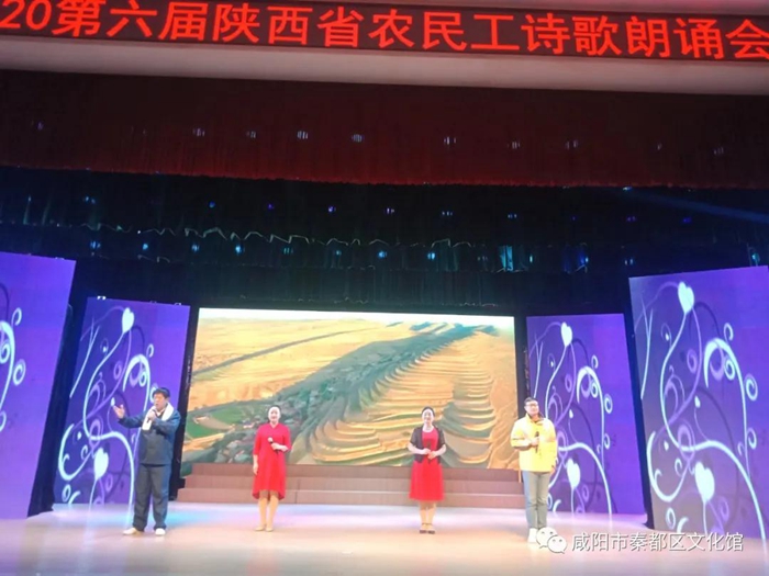 由陕西省文化和旅游厅主办,陕西省文化馆、汉中市群众艺术馆承办的第六届陕西省农民工诗歌朗诵会,10月28日下午在汉中举行。来自省直、西安、安康、延安、宝鸡、咸阳、渭南、铜川、汉中、商洛的16件作品在此次活动中相继呈现。我馆原创诗歌《黄土地的儿子》代表咸阳市参加了此次展演。