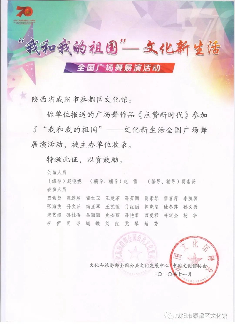 2020年12月29日 咸阳市秦都区文化馆喜报
