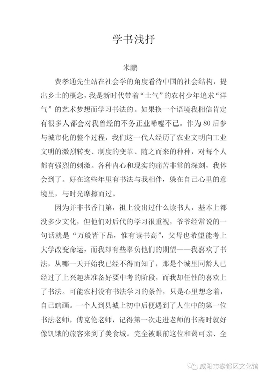 米鹏,1984年生,陕西礼泉人,中国书协会员,陕西省青年书法家协会常务理事,咸阳市市直机关书画协会主席,咸阳市青年书法家协会副主席。