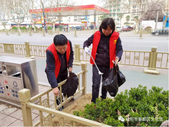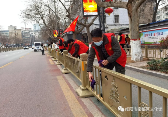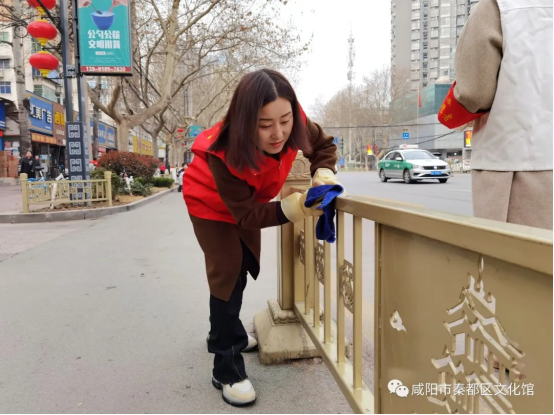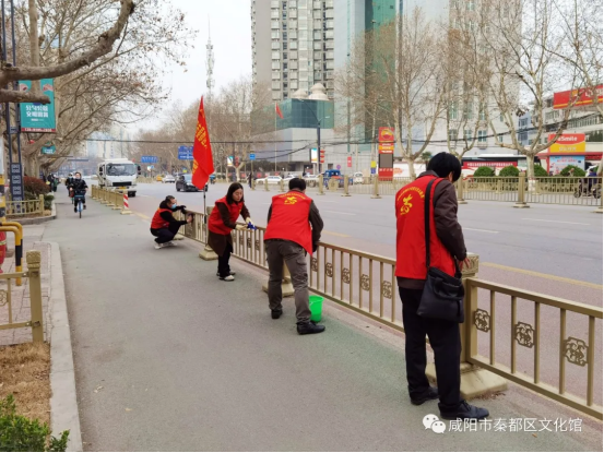 为贯彻习近平总书记关于深化志愿服务活动系列讲话精神,继续书写“德善咸阳”建设新的文明荣光,为建设全国文明城市提供强大精神动力。3月5日上午,我馆文化志愿者走进七里铺社区,和社区的志愿者一起,在辖区开展以“共建文明城市 共享城市文明”为主题的学雷锋志愿服务活动,志愿者们沿人民西路向东擦拭防护栏、捡拾绿化带、沿街垃圾一公里。