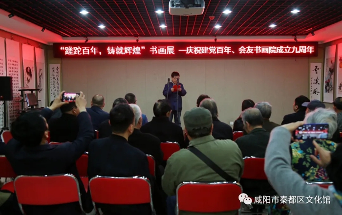 3月29日上午,由陕西会友书画院、秦都区文化馆联合举办的“蹉跎百年 铸就辉煌”庆祝建党100周年暨陕西会友书画院成立9周年书画展,在区文化馆三楼书画展厅成功举办,来自社会各界人士和书画爱好者近百人参加了开展仪式。