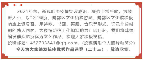 歌曲《一线有你》作词、作曲赵艳妮,演唱顾燕。创作于2021年11月,创作者意图通过歌曲的形式来表达对于那些工作奋战在一线的平凡英雄的赞美和歌颂之情,以在全社会树立一种弘扬正气,传递正能量的价值导向。 全曲由三段式构成,第一段用音乐的语汇描述了“你”的平凡形象;第二段则展开了对“你”的赞美与歌颂,其中三连音的运用给人带来了听觉上“你”形象的强化作用;最后一段虽然只有两个乐句,但却使全曲的立意得到了高度的提升,主题更加突出。 作者简介 赵艳妮,秦都区文化馆馆长、咸阳市音乐家协会会员、咸阳市电视艺术家协会朗诵学会副会长、咸阳市突出贡献专家、秦都区文化艺术界领军人才。创作有歌曲《党旗飘扬》《百年华章》《汇通面又开张了》等作品。 演唱者简介 顾燕,咸阳市优秀青年女高音、优秀音乐教师教学能手。2012年获省声乐比赛青年组通俗唱法二等奖,2013年获省中华杯声乐比赛民族唱法一等奖。2014年随团赴马来西亚吉隆坡进行国际文化交流演出受到国外友人高度称赞。多次受邀参加省、市春晚大型文艺晚会录制表演及文化下乡惠民等一系列公益慈善演出活动和评委。主要原创代表作品有:《勇往直前》、《古渡谣》《亲爱的好妈妈》《何时来》《十里水街》《咸阳湖之恋》《一线有你》。 文本编辑:陈 阳 校 对:朱小健 视频编辑:李旭东 网络编辑:李旭东 审 核:赵艳妮 上一篇:2022年1月10日 共克时艰 抗疫迎春丨秦都区“抗疫情 迎新年”文化云展演系列活动22 下一篇:2021年12月13日 咸阳市秦都区文化馆原创歌曲《百年华章》再创佳绩