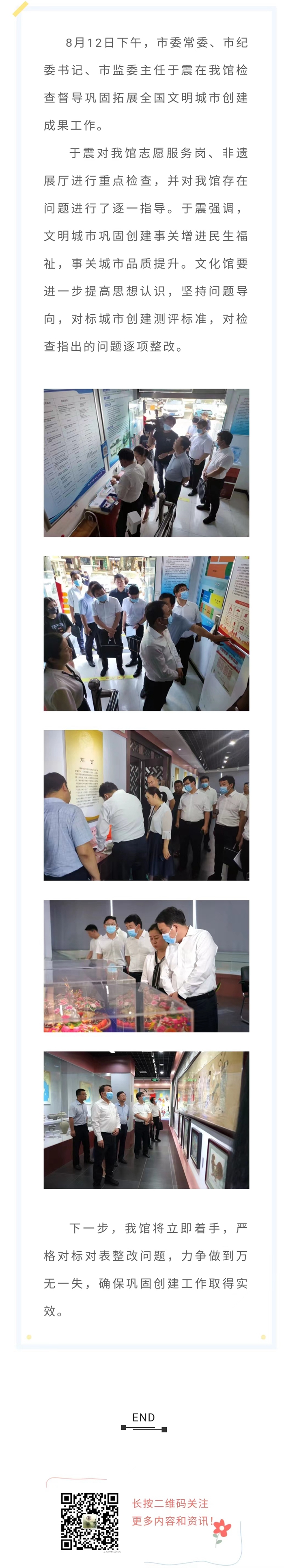 2022年8月12日下午 于震检查督导我馆全国文明城市巩固创建工作