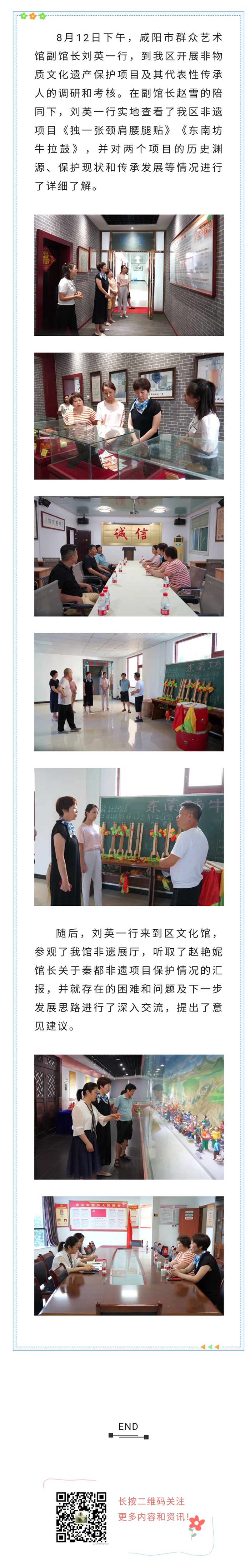 2022年8月12日下午 咸阳市群众艺术馆副馆长刘英调研考核我区非遗项目