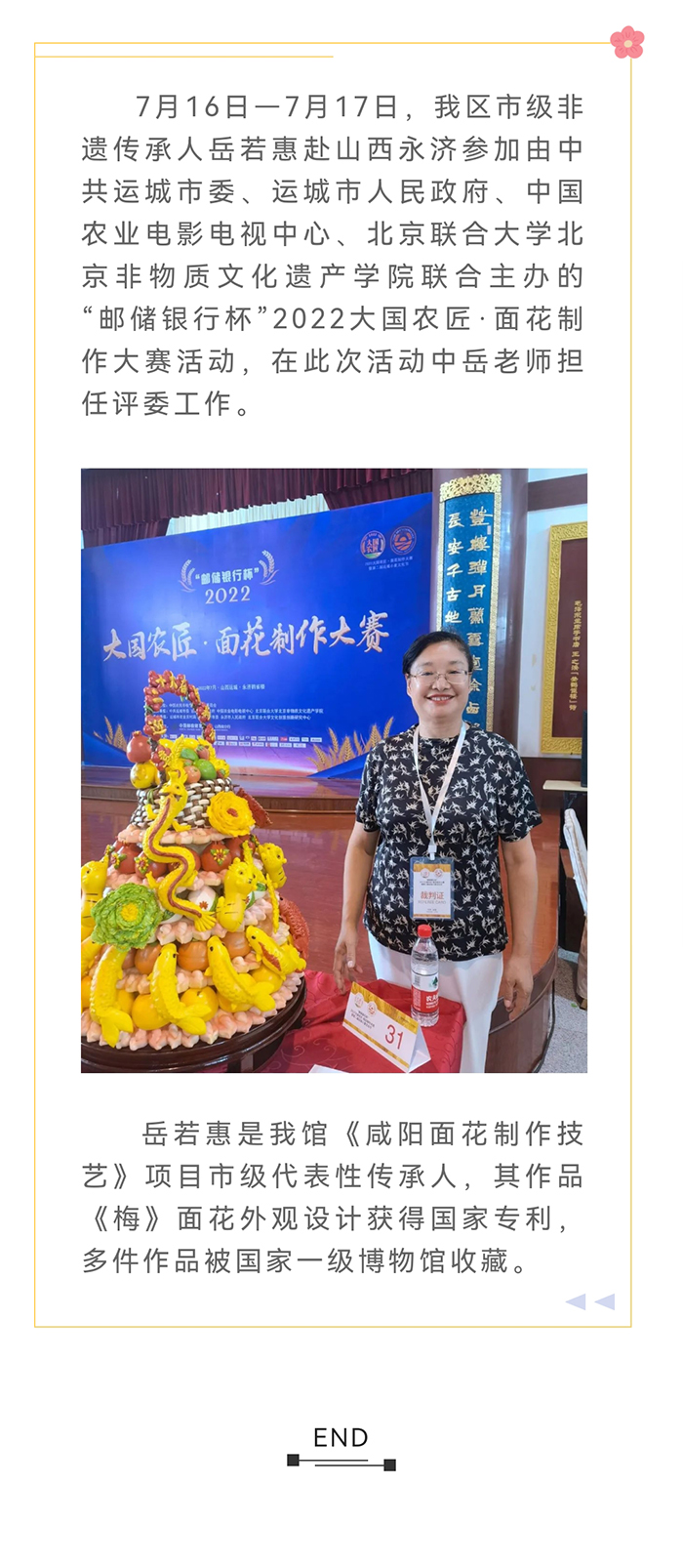 2022年7月17日 我区市级非遗传承人岳若惠担任2022大国农匠·面花制作大赛评委