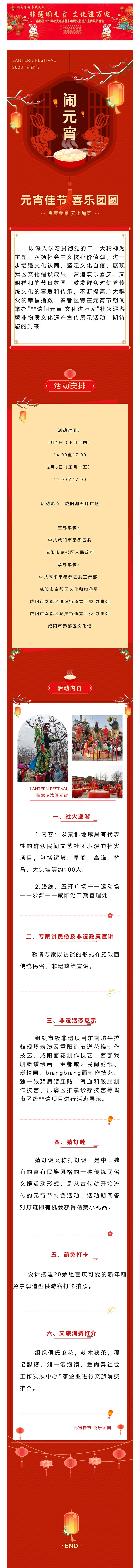 2023年2月4日 预告“非遗闹元宵 文化进万家”秦都区社火巡游暨非物质文化遗产宣传展示活动