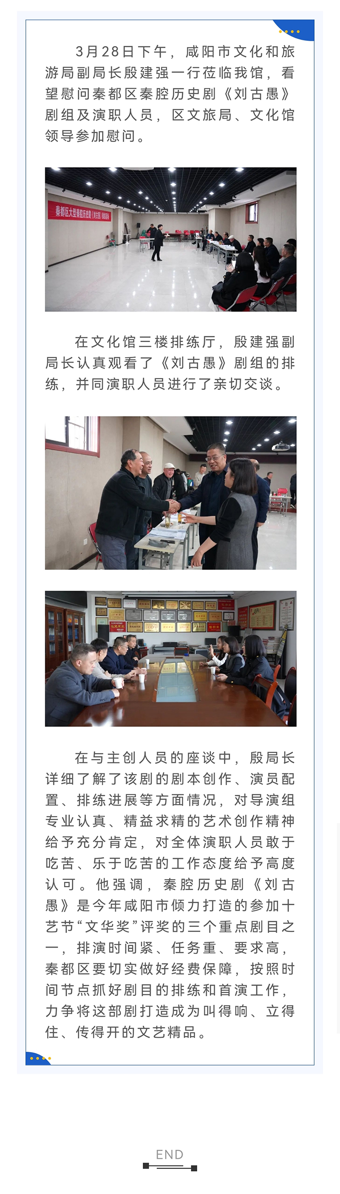 2023年3月28日 咸阳市文化和旅游局殷建强一行来我馆慰问《刘古愚》剧组演职人员